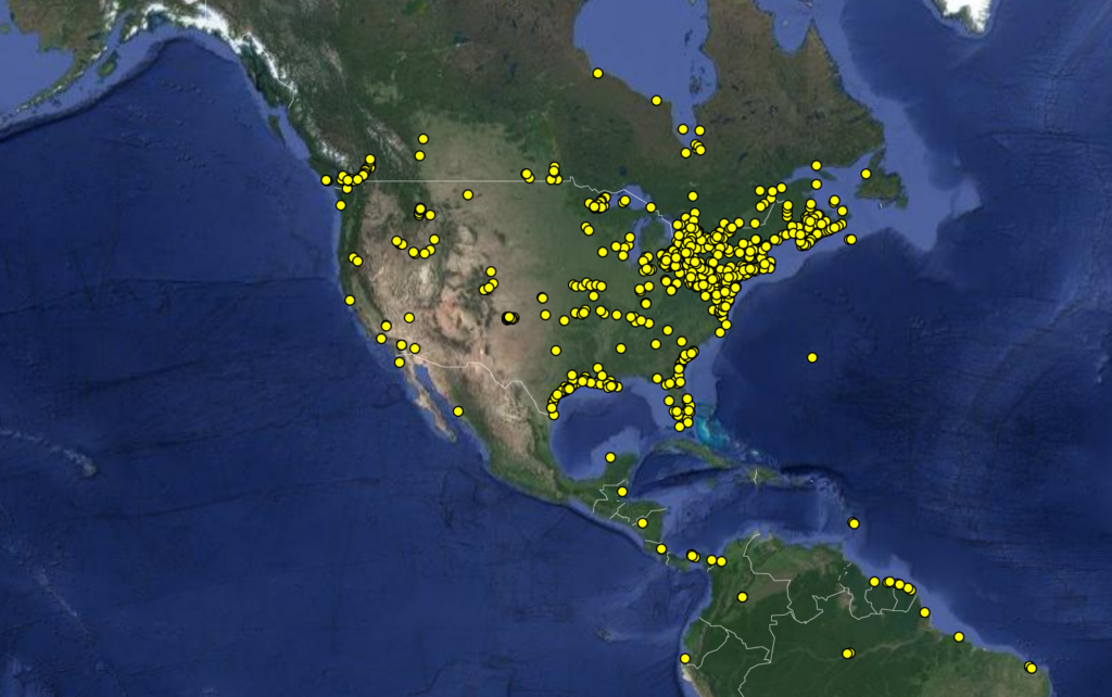 Enter the Motus Wildlife Tracking System, a community science effort organized by an international network of researchers who often track very small organisms that cannot handle larger satellite tags. This system pairs VHF technology with a network of receiving stations that automatically scan for any animals tagged with specific VHF frequency transmitters that come within range of the receiver.