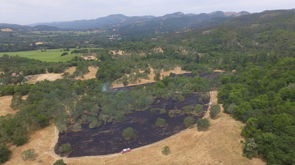 Berleman helped to plan and conduct the first multi-acre prescribed burn at Bouverie Preserve in 2017. Just months later, the oaks in this unit were protected from the damaging effects of the wind-driven Nuns Fire.