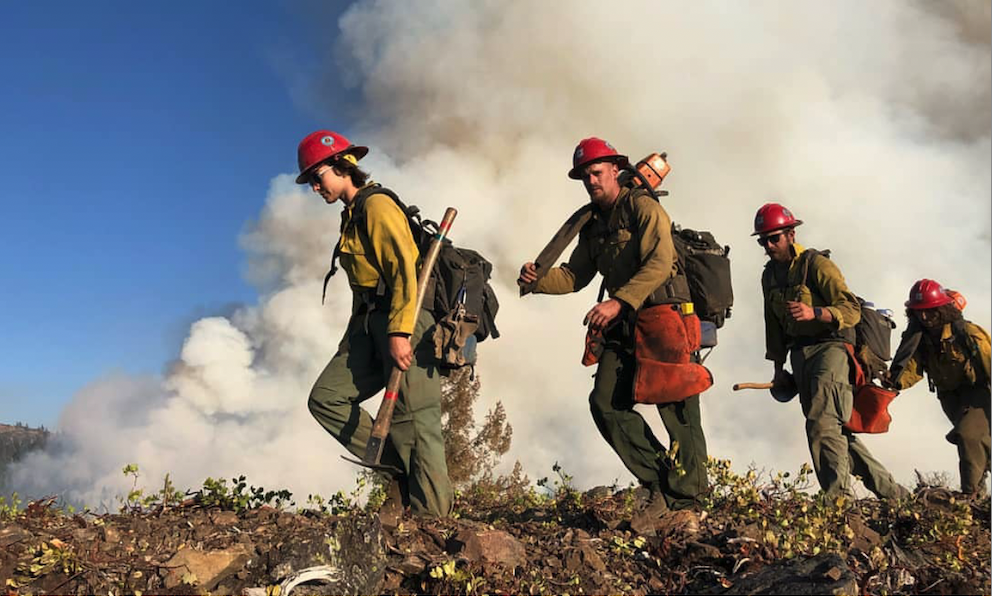 Berleman and other Redding hotshot crew members hike out from the Hirz fire, 2018. Photo: Teresa Jean Miller