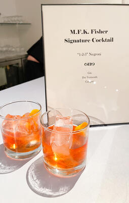 Mouth-watering small bites by Foreign Cinema were accompanied by M.F.K. Fisher’s signature cocktail, the ‘1-2-3’ Negroni, and the yummy unpretentious wines of Wine Snob* winery in Glen Ellen.