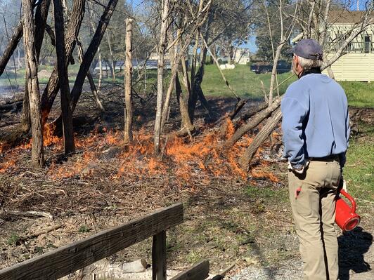 Fred and Catherine are also working towards restoration of the riparian corridor on their property. They hope that this prescribed burn helps the beautiful, standing willow trees and ninebark shrubs flourish.