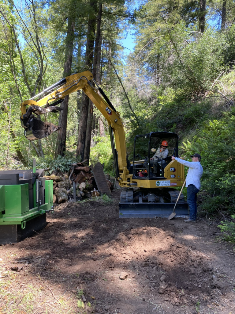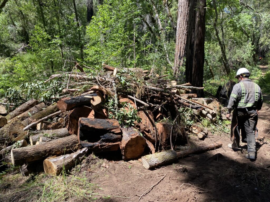 Hundreds of trees along the Stuart Creek corridor have been killed or damaged by the 2017 Nuns Fire, Sudden Oak Death, and prolonged drought. While many dead trees have been cut and moved to the side of the road, the sheer volume of material is not manageable with typical methods such as pile burning, biochar kilns, chipping, or hauling offsite.