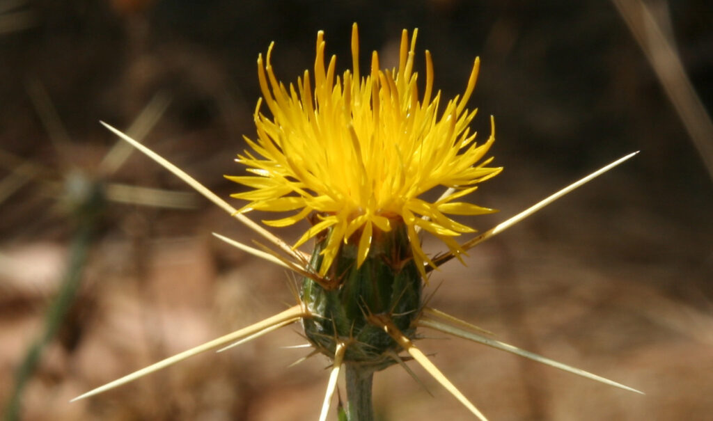 Yellow starthistle, a highly invasive and noxious weed, forms dense stands that outcompete native plants. Sharp long spines on flowerheads degrade wildlife habitat and livestock grazing. The plant can cause neurological disorder when eaten, especially in horses. Yellow starthistle must be burned when the plant is bolting.