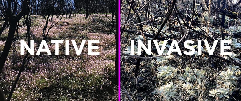 Woolly mullein throws its weight around in delicate post-fire wildflower areas