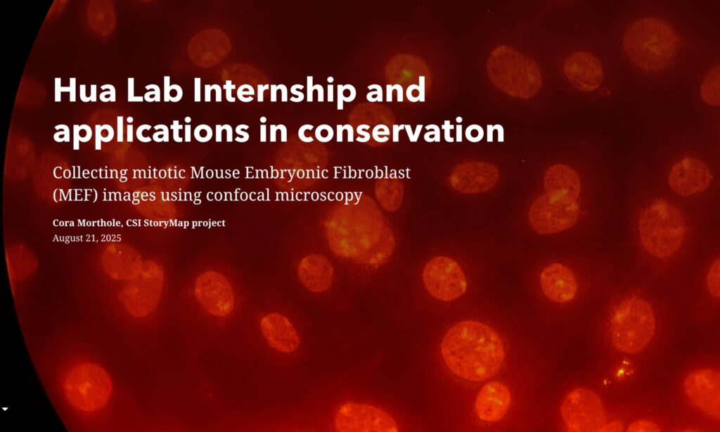 Hua Lab Internship and applications in conservation: Collecting mitotic Mouse Embryonic Fibroblast (MEF) images using confocal microscopy (Cora Morthole)